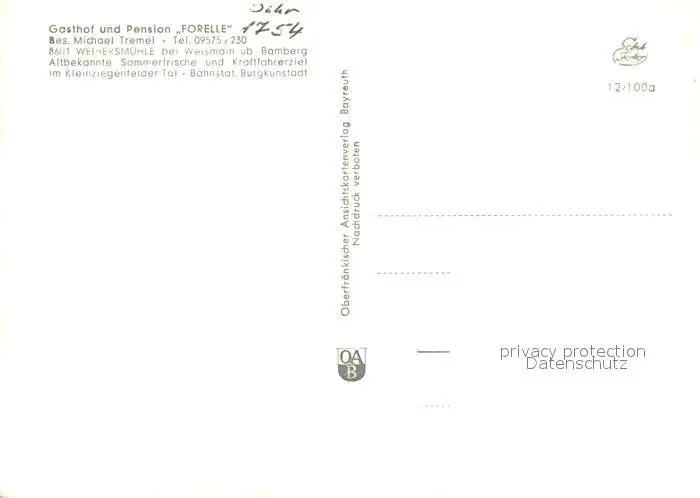 Weihersmuehle_Weismain Gasthof Pension Forelle Panorama Kleinziegenfelder Tal Weihersmuehle_Weismain postalisch nicht gelaufen nach 1965 Erhaltung siehe scans [FriedD77] Frierer