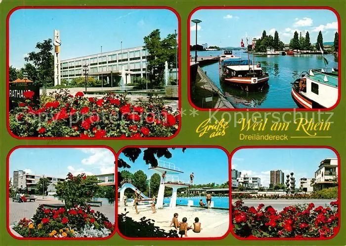 AK / Ansichtskarte Weil_am_Rhein Rathaus Bootshafen Schwimmbad Weil_am_Rhein
