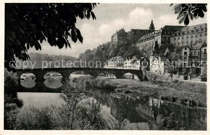 Weilburg Partie am Fluss Bruecke Schloss Weilburg postalisch nicht gelaufen 1921-1965 Erhaltung siehe scans [FriedD77] Frierer