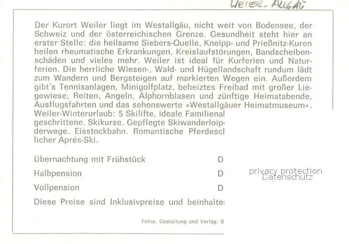 Weiler_Allgaeu Gasthof Zur Traube Weler Gastraeume Zimmer Panorama Weiler_Allgaeu postalisch nicht gelaufen nach 1965 Werbekarte (keine Postkarte) Erhaltung siehe scans [WerneD78] Werbekarte (keine Postkarte) WernPID7