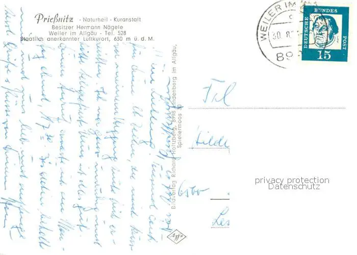 Weiler_Allgaeu Naturheil-Kuranstalt Priessnitz Weiler_Allgaeu postalisch gelaufen ca. 1963 Erhaltung siehe scans [FriedD77] Frierer