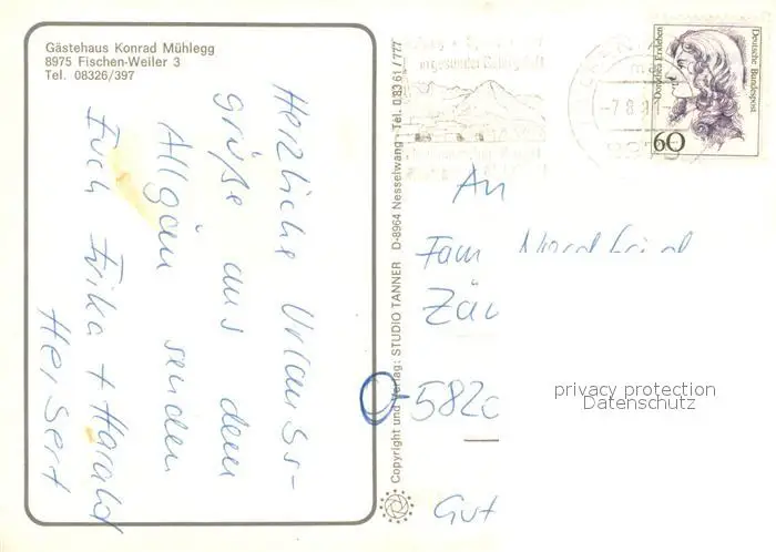 Weiler_Fischen Gaestehaus Konrad Muehlegg Weiler_Fischen postalisch gelaufen 1981 Erhaltung siehe scans [FriedD77] Frierer