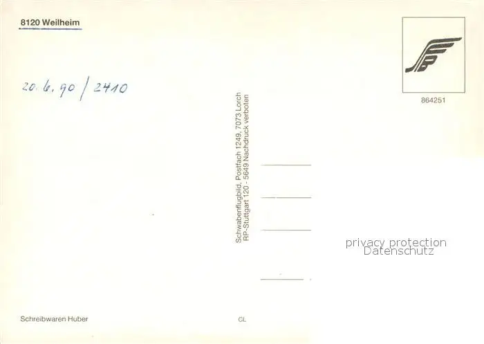 Weilheim_Oberbayern Fliegeraufnahme Weilheim Oberbayern postalisch nicht gelaufen 1990 Erhaltung siehe scans [FriedD77] Frierer