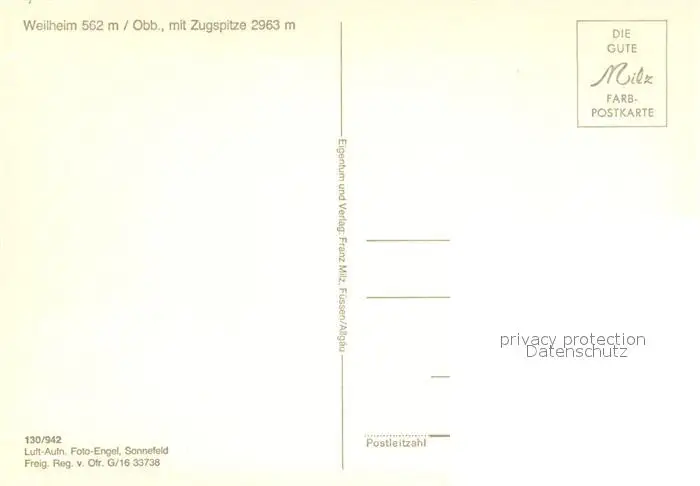 Weilheim_Oberbayern Fliegeraufnahme Zugspitze Weilheim Oberbayern postalisch nicht gelaufen nach 1965 Erhaltung siehe scans [PaolaD17] PaolPID1