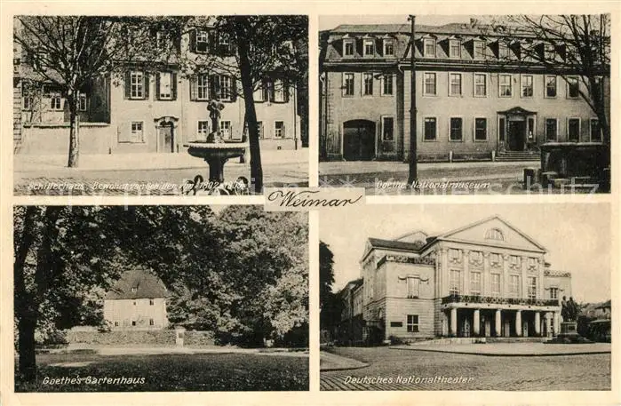 AK / Ansichtskarte Weimar_Thueringen Schillerhaus Goethe Nationalmuseum Deutsches Nationaltheater Goethes Gartenhaus Weimar Thueringen