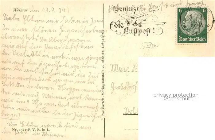 Weimar_Thueringen Schillerhaus Goethe-Nationalmuseum Deutsches-Nationaltheater Goethes-Gartenhaus Weimar Thueringen postalisch gelaufen 1934 Erhaltung siehe scans [LiesaD40] LiesID40