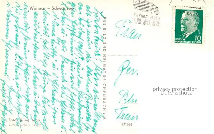 Weimar Thueringen Kategorie Alte Ansichtskarten Postkarten bx62877 Weimar_Thueringen Schwansee Weimar Thueringen postalisch gelaufen 1964 Erhaltung siehe scans [KathaD81]