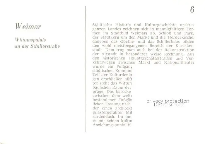 Weimar Thueringen Kategorie Alte Ansichtskarten Postkarten bx49745 Weimar_Thueringen Wittumspalais Schillerstrasse Geschichte Weimar Thueringen postalisch nicht gelaufen nach 1965 Sammelbild (keine Postkarte) Erhaltung siehe scans [FriedD77]