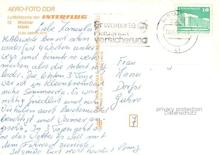 Weimar__Thueringen Fliegeraufnahme Markt postalisch gelaufen nach 1965 Erhaltung siehe scans [LiesaD40] LiesID40