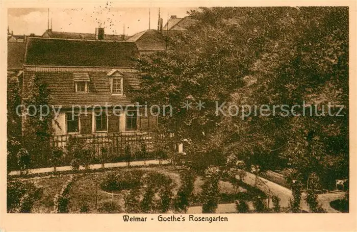 AK / Ansichtskarte Weimar__Thueringen Goethe s Rosengarten Radierung von Carl Jander Kuenstlerkarte Handpressen Kupferdruck