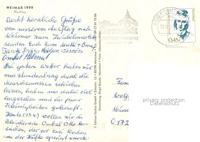 Weimar__Thueringen Markttag postalisch gelaufen 1999 Erhaltung siehe scans [LiesaD40] LiesID40