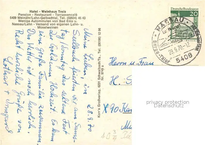 Weinaehr Hotel Weinhaus Treis Weinaehr postalisch gelaufen 1970 Erhaltung siehe scans [KathaD81] Kathoren