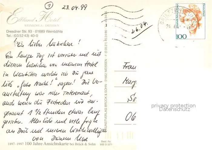 Weinboehla Elbland Hotel Gastraum Kirche Weinboehla postalisch gelaufen 1999 Erhaltung siehe scans [WerneD78] WernPID7