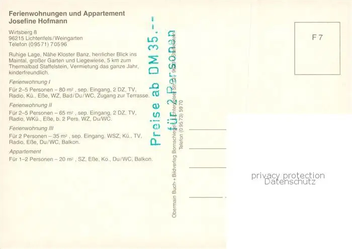 Weingarten_Oberfranken Ferienwohnungen Appartements Staffelberg Vierzehnheiligen Staffelstein Obermain-Therme Kloster Banz Fliegeraufnahmen Weingarten Oberfranken postalisch nicht gelaufen nach 1965 Erhaltung siehe scans [FriedD77] Frierer