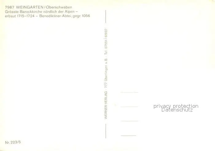 Weingarten_Wuerttemberg Fliegeraufnahme mit Benediktiner Abtei Weingarten Wuerttemberg postalisch nicht gelaufen nach 1965 Erhaltung siehe scans [WerneD78] WernPID7