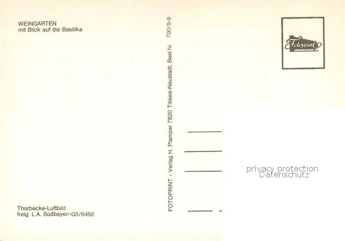 Weingarten_Wuerttemberg Fliegeraufnahme mit der Basilika Weingarten Wuerttemberg postalisch nicht gelaufen nach 1965 Erhaltung siehe scans [WerneD78] WernPID7