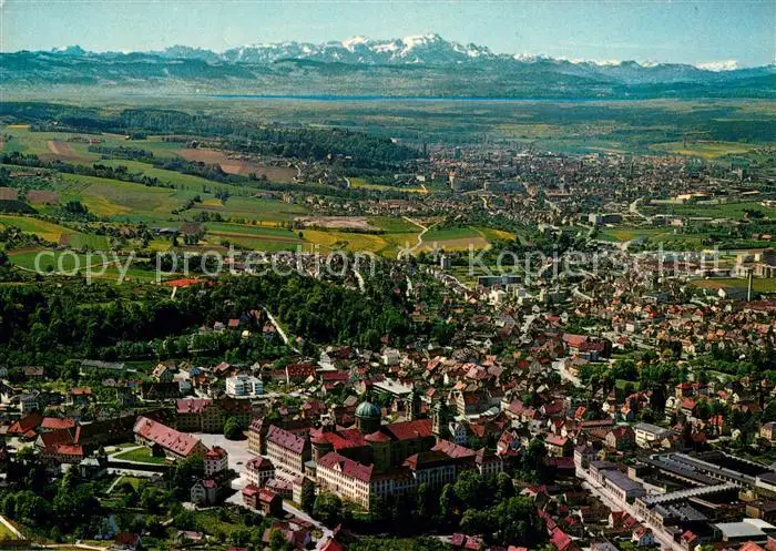 AK / Ansichtskarte Weingarten_Wuerttemberg Groesste Barockkirche noerdlich der Alpen Benediktiner Abtei Alpenblick Fliegeraufnahme Weingarten Wuerttemberg