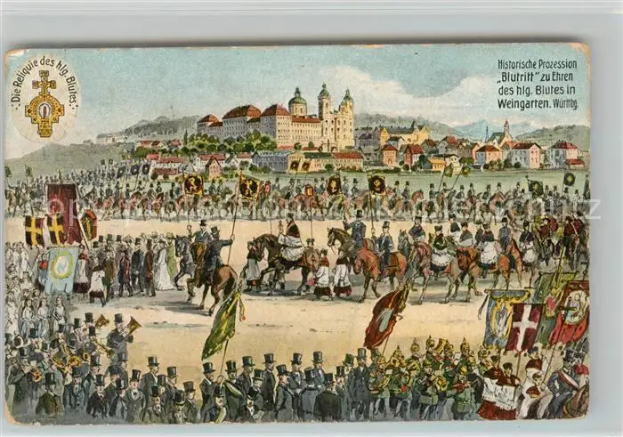 AK / Ansichtskarte Weingarten_Wuerttemberg Prozession Blutritt Kloster Reliquie des heiligen Blutes / Weingarten Wuerttemberg