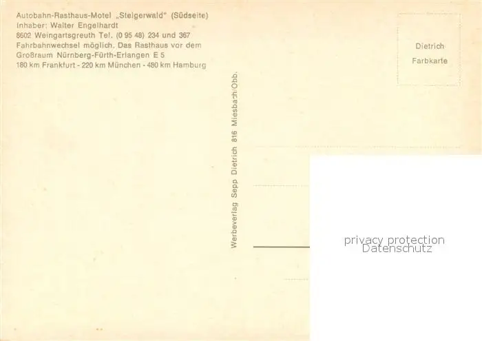 Weingartsgreuth Autobahn Rasthaus Motel Steigerwald Terrasse Weingartsgreuth postalisch nicht gelaufen nach 1965 Erhaltung siehe scans [FriedD77] Frierer