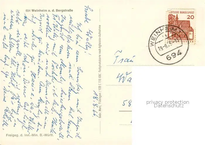 Weinheim_Bergstrasse Fliegeraufnahme Weinheim_Bergstrasse postalisch gelaufen 1966 Erhaltung siehe scans [WerneD78] WernPID7