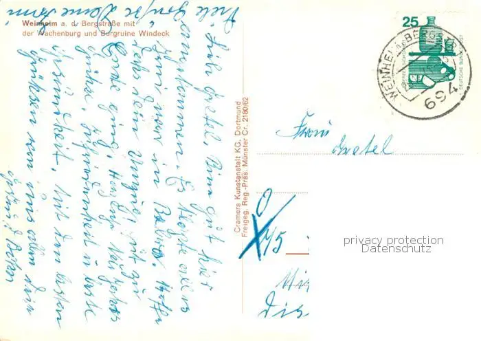 Weinheim_Bergstrasse Fliegeraufnahme mit der Wachenburg und Burgruine Windeck Weinheim_Bergstrasse postalisch gelaufen nach 1965 Erhaltung siehe scans [WerneD78] WernPID7