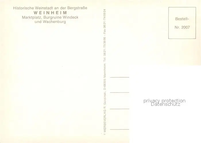 Weinheim_Bergstrasse Marktplatz Denkmal Burgruine Windeck und Wachenburg Weinheim_Bergstrasse postalisch nicht gelaufen nach 1965 Erhaltung siehe scans [FriedD77] Frierer