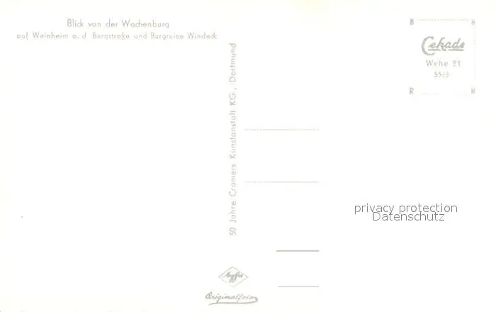 Weinheim_Bergstrasse Panorama Blick von der Wachenburg Burgruine Windeck Weinheim_Bergstrasse postalisch nicht gelaufen 1955 Erhaltung siehe scans [FriedD77] Frierer