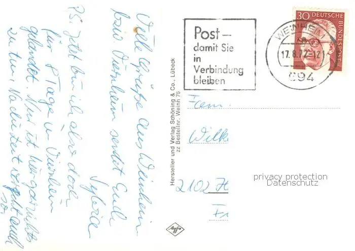 Weinheim_Bergstrasse Panorama Marktplatz Burgen Rathaustreppe WSC Wachenburg Burgruine Windeck Wappentor Birkenauer Tal Panorama Weinheim_Bergstrasse postalisch gelaufen 1972 Erhaltung siehe scans [WerneD78] WernPID7