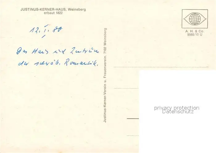 Weinsberg Justinus Kerner Haus erbaut 1822 Weinsberg postalisch nicht gelaufen 1980 Erhaltung siehe scans [FriedD77] Frierer