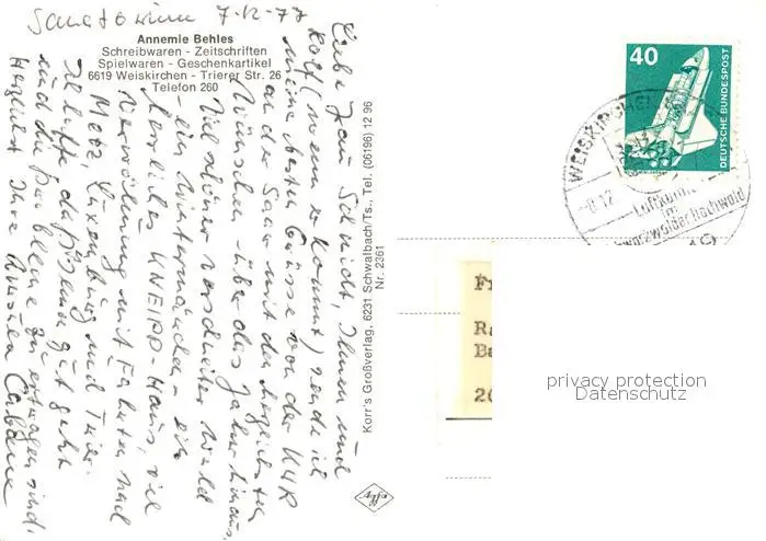 Weiskirchen_Saar Hochwald-Sanatorium Holzbachtal Weiskirchen Saar postalisch gelaufen 1977 Erhaltung siehe scans [PaolaD17] PaolPID1
