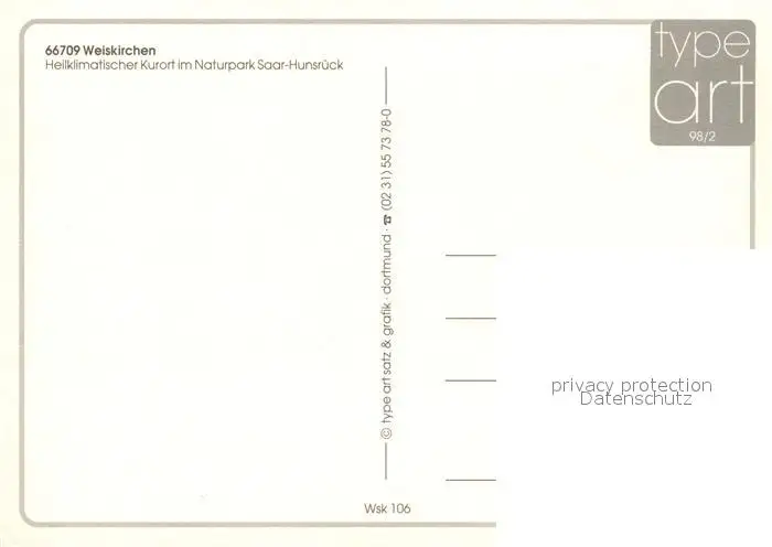 Weiskirchen_Saar Kurort Naturpark Saar Hunsrueck Kurzentrum Kurparksee Holzbachtal Chronik Weiskirchen Saar postalisch nicht gelaufen nach 1965 Erhaltung siehe scans [FriedD77] Frierer