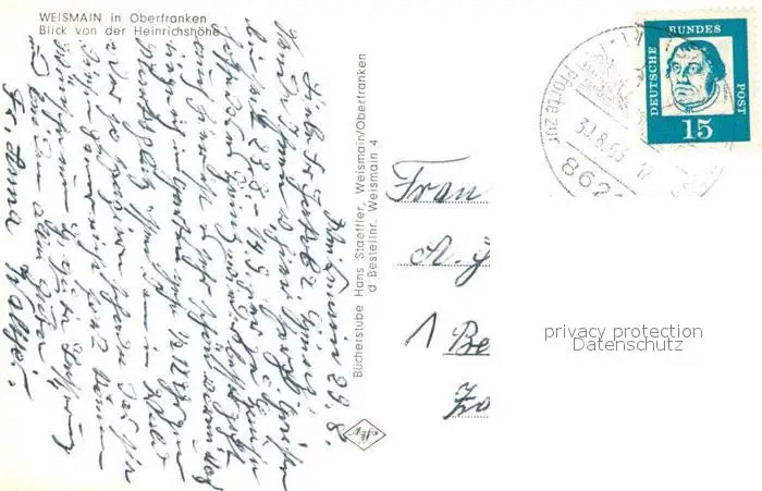 Weismain Blick von der Heinrichshoehe Weismain postalisch gelaufen 1965 Erhaltung siehe scans [WerneD78] WernPID7