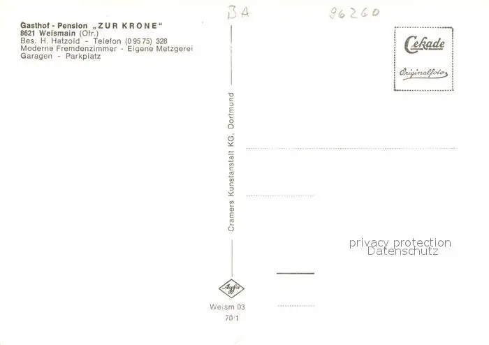 Weismain Kategorie Alte Ansichtskarten Postkarten bx93949 Weismain Gasthof Pension Zur Krone Weismain postalisch nicht gelaufen nach 1965 Erhaltung siehe scans [WerneD78]