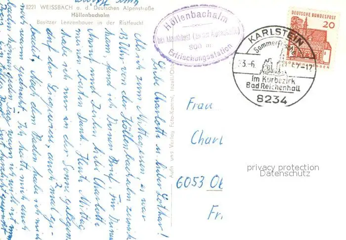 Weissbach_Alpenstrasse Hoellenbachalm Weissbach_Alpenstrasse postalisch gelaufen 1967 Erhaltung siehe scans [FriedD77] Frierer