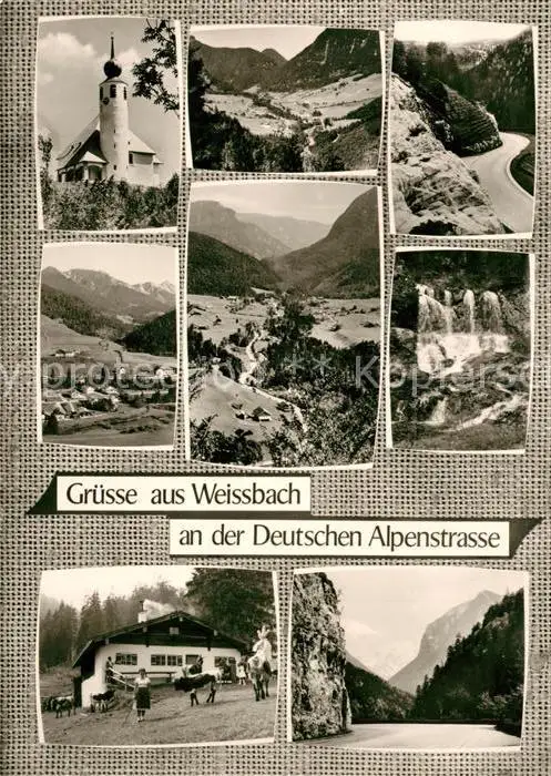 AK / Ansichtskarte Weissbach_Alpenstrasse Kirche Wasserfall Panoramen Weissbach_Alpenstrasse