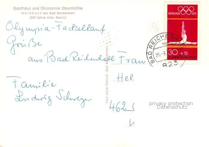 Weissbach_Bad_Reichenhall Gasthaus und Okonomie Oberschule Weissbach_Bad_Reichenhall postalisch gelaufen 1972 Erhaltung siehe scans [LiesaD40] LiesID40