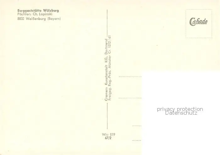 Weissenburg__Bayern Burggaststaette Wuelzburg Fliegeraufnahme postalisch nicht gelaufen nach 1965 Erhaltung siehe scans [WerneD78] WernPID7