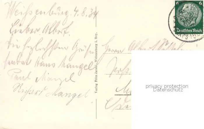 Weissenburg__Bayern Wuelzburg Wallgraben postalisch gelaufen 1934 Erhaltung siehe scans [WerneD78] WernPID7