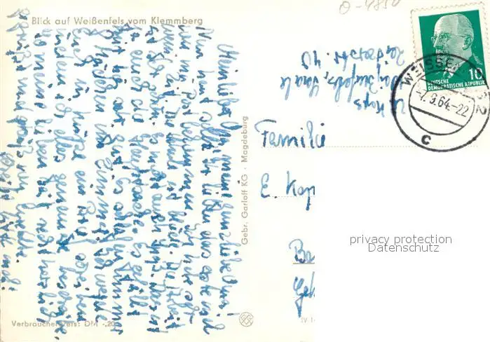 Weissenfels_Saale Stadtpanorama Blick vom Klemmberg Weissenfels_Saale postalisch gelaufen 1964 Erhaltung siehe scans [FriedD77] Frierer