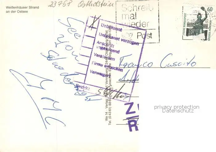Weissenhaeuser_Strand Fliegeraufnahme Weissenhaeuser_Strand postalisch gelaufen 1991 Erhaltung siehe scans [FriedD77] Frierer