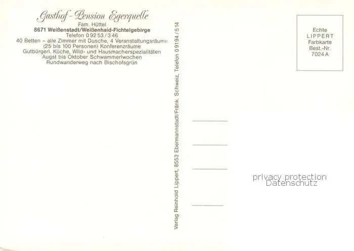 Weissenhaid Gasthof Pension Egerquelle Seglerhafen an der Eger Weissenhaid postalisch nicht gelaufen nach 1965 Erhaltung siehe scans [FriedD77] Frierer