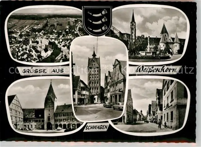 Weissenhorn Stadtturm Kirchen Fliegeraufnahme Weissenhorn postalisch nicht gelaufen nach 1965 Erhaltung siehe scans [LiesaD40] LiesID40