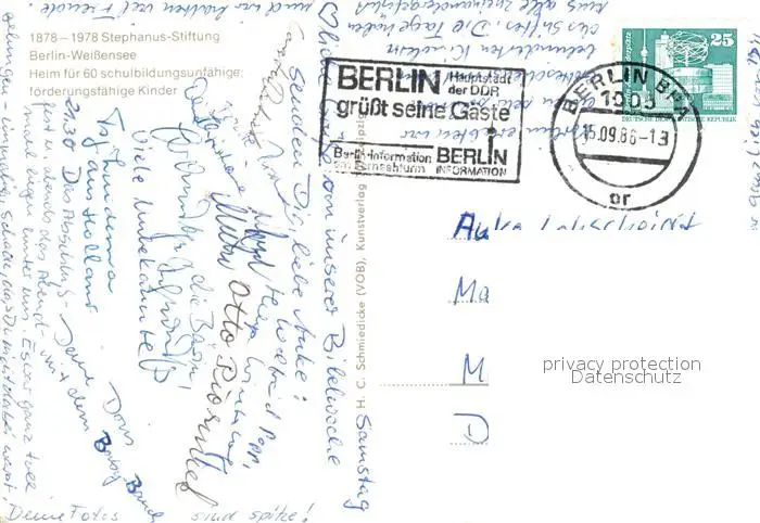 Weissensee_Berlin Stephanus Stiftung Weissensee Berlin postalisch gelaufen 1986 Erhaltung siehe scans [KathaD81] Kathoren