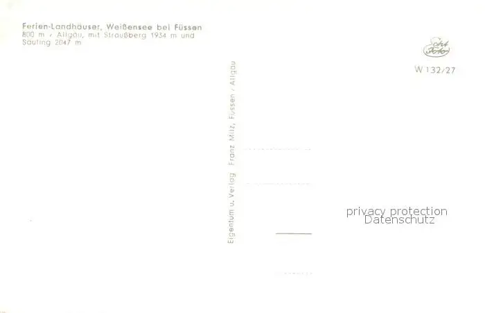 Weissensee_Fuessen Ferien Landhaeuser mit Straussberg und Saeuling Weissensee Fuessen postalisch nicht gelaufen nach 1965 Erhaltung siehe scans [WerneD78] WernPID7