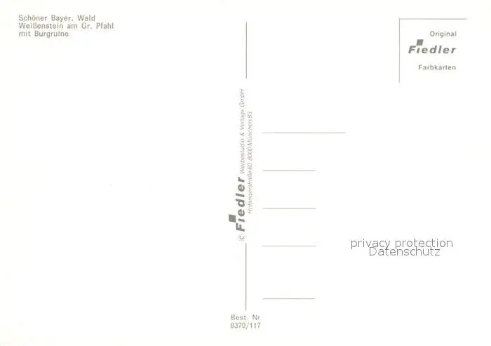 Weissenstein_Regen Grosser Pfahl Burgruine Weissenstein_Regen postalisch nicht gelaufen nach 1965 Erhaltung siehe scans [KathaD81] Kathoren