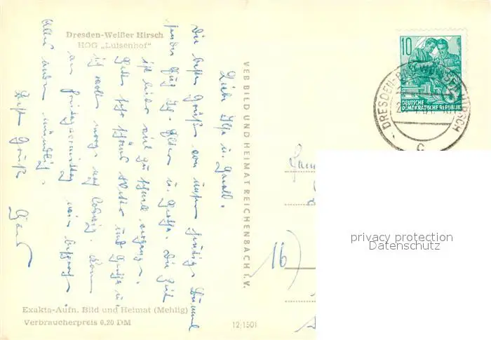 Weisser_Hirsch HOG Luisenhof Hotel Restaurant Weisser Hirsch postalisch gelaufen 1961 Erhaltung siehe scans [FriedD77] Frierer