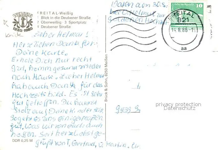 Weissig_Freital Deubener Str Oberweissig Sportplatz Weissig Freital postalisch gelaufen 1986 Erhaltung siehe scans [WerneD78] WernPID7