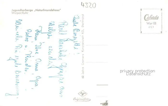 Welper Jugendherberge Naturfreundehaus Welper postalisch nicht gelaufen 1961 Erhaltung siehe scans [FriedD77] Frierer
