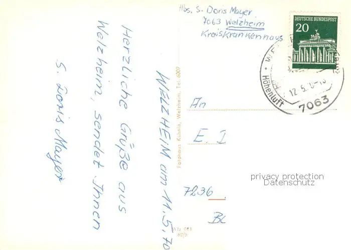 Welzheim Feuersee Kirche Oberer Marktplatz Welzheim postalisch gelaufen 1969 Erhaltung siehe scans [WerneD78] WernPID7