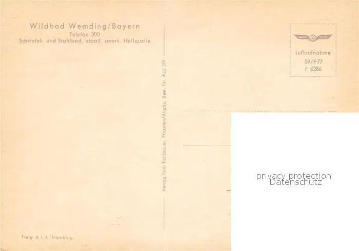 Wemding Wildbad Fliegeraufnahme Wemding postalisch nicht gelaufen nach 1965 Erhaltung siehe scans [FriedD77] Frierer